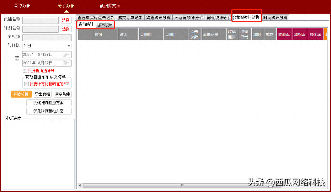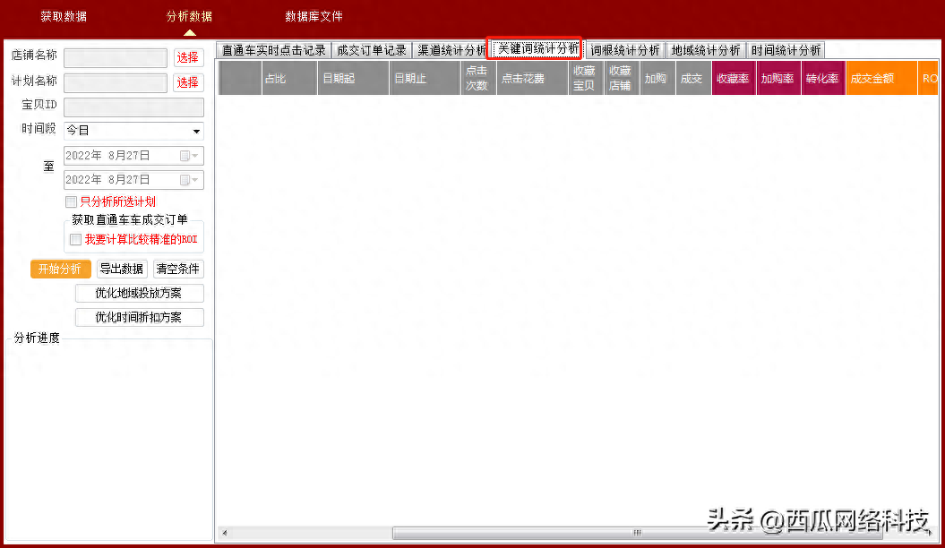 统计每个点击的成交行为,汇总分析每个点击的关键词、词根、地域、时间等,做精细化直通车分析。