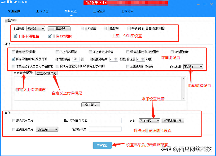 图片设置,可对上家的图片水印进行处理,也可以对自己上架的产品添加水印以及设置水印内容。