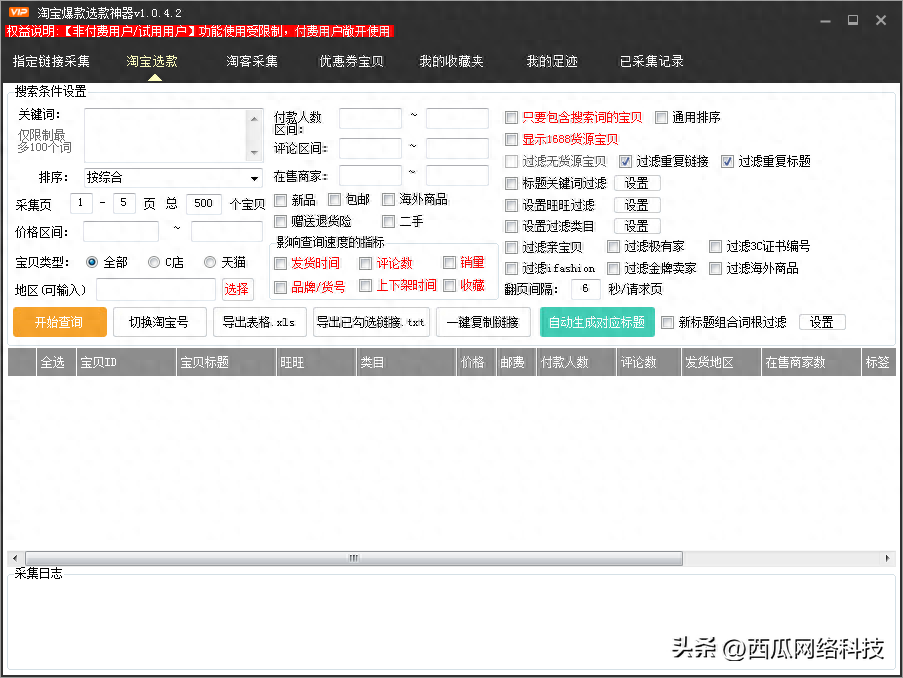 查询宝贝id、标题、类目、价格、付款人数、评论数、在售商家数等信息,支持一键复制链接以及生成表格导出数据,还可自动生成对应标题!