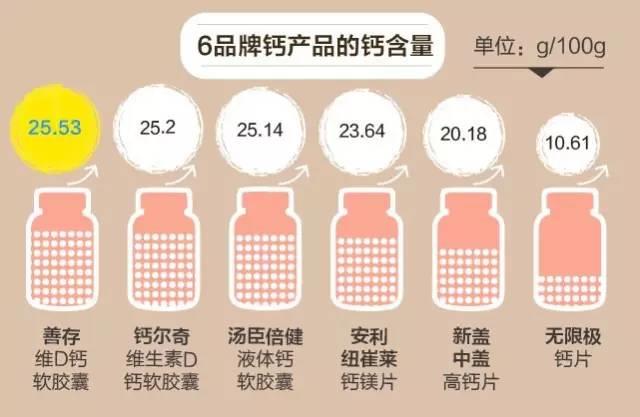 我们《消费者报道》就曾对无限极的钙片进行了检测,结果显示6品牌钙片中,无限极的钙含量最低为10.61 g/100g,不足其它5品牌的一半。