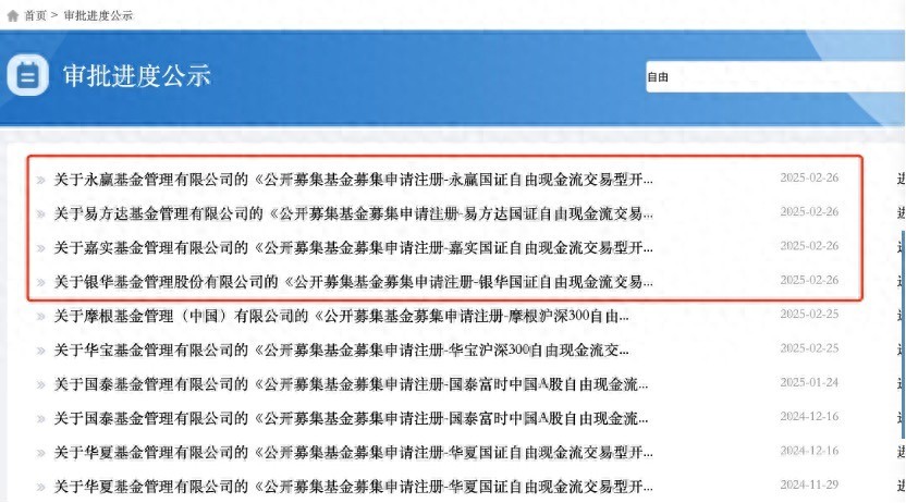 2月26日,永赢、易方达、嘉实和银华上报了国证自由现金流ETF。这也是继华夏国证自由现金流ETF之后,第二批国证自由现金流ETF上报。据悉,这4只国证自由现金流ETF未来获批发行后将在深交所上市。