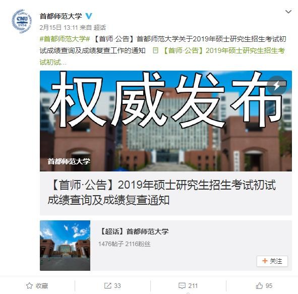 今天中午,东方网·纵相新闻记者看到,首都师范大学暂未给出回应。官方微博最新一条消息还是2月15日更新的一条关于考研初试查分和成绩复查的通知。