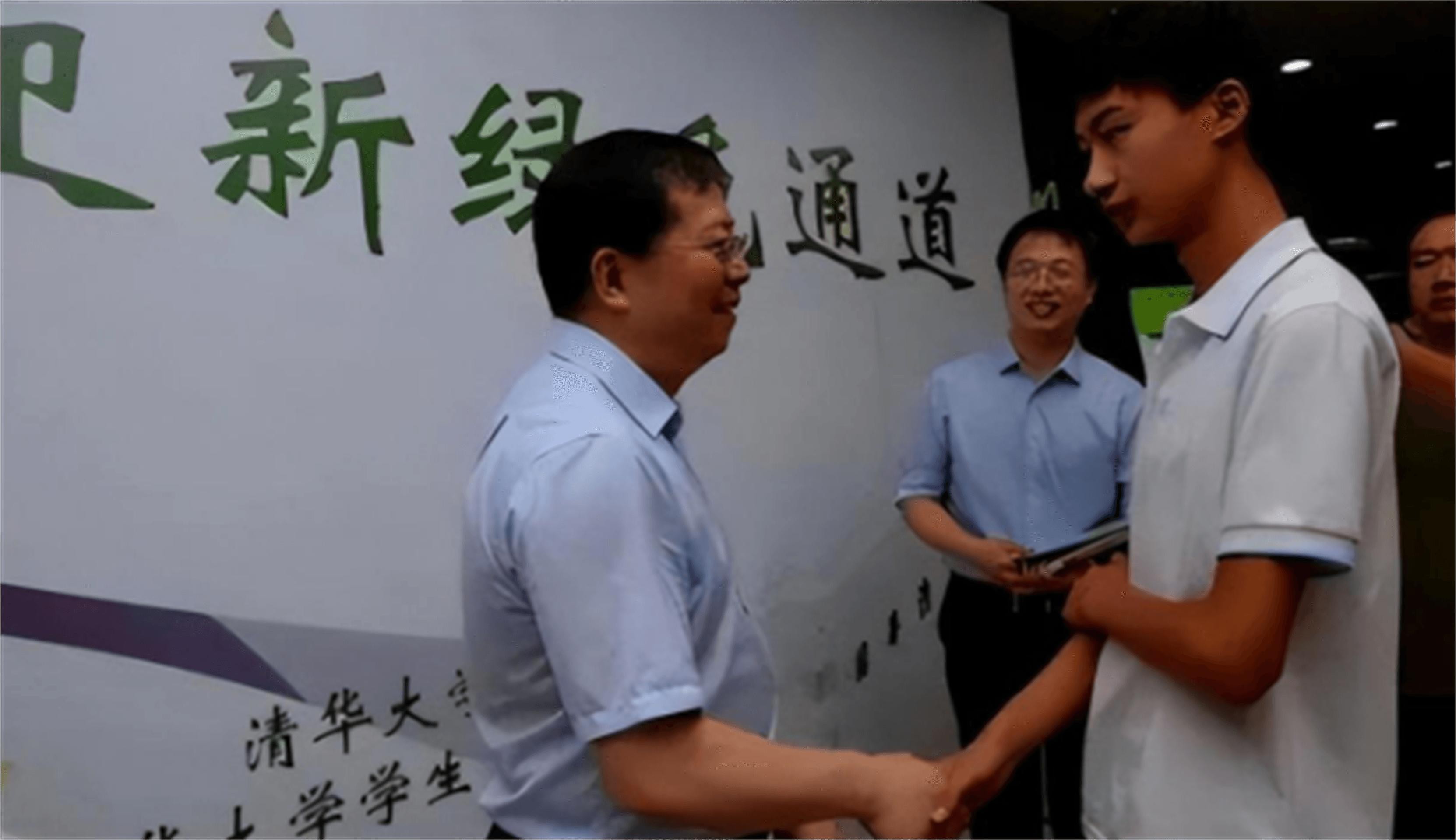 2017年8月,清华大学新生入学,当时的清华校长亲自前来迎接这位小男孩,第一个与他握手交谈。