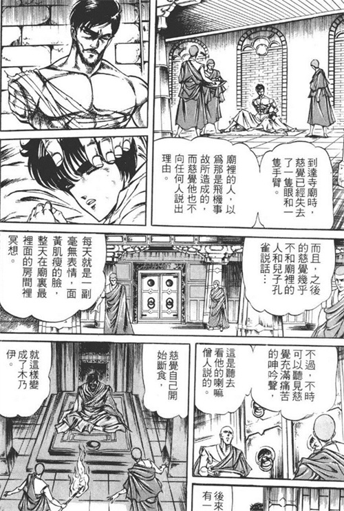 慈觉带着被诅咒的孩子,来到了西藏,乘坐的飞机被毁掉,重伤的慈觉抱着儿子孔雀,来到了山顶喇嘛寺养伤,损失掉一条手臂和一只眼睛,之后的慈觉在寺庙中不与任何人说话,每天都是都是一副面无表情的样子,拒绝吃饭只是冥想,终于有一天慈觉变成了一具木乃伊,最强退魔师落得如此下场,让人唏嘘。