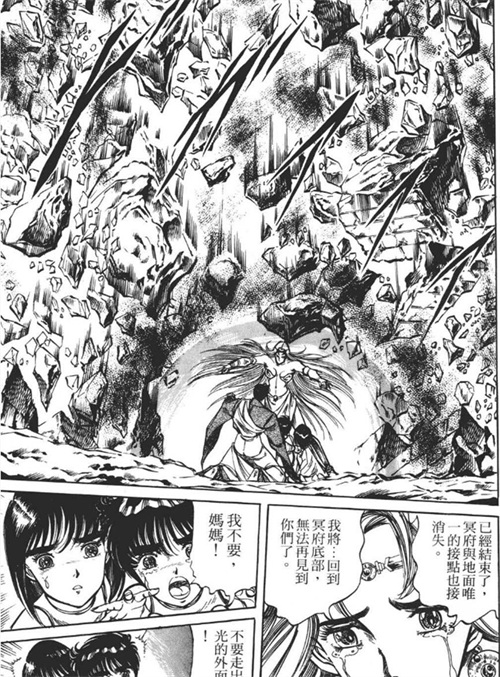 孩子危难之际,孔雀的母亲井口摧毁,她将回到魔界,无法在回到地面上。她心知孔雀与他姐姐是黑暗与光明的结合的产物,并不会被世人所接受,但是她相信人性是善良的,只要保持一颗温暖的心,黑暗也不会带来毁灭,她嘱咐慈觉将孩子带到光明之地,善待孩子,只有将黑暗与光明融合一起,才能彻底改变自己的命运,决不能放弃。