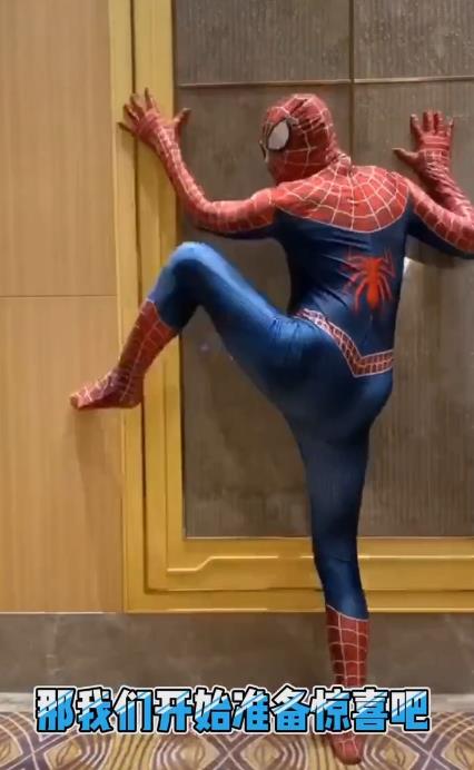 最大的惊喜,就是要扮演成儿子最喜欢的蜘蛛侠!大家觉得朱桢这造型如何?
