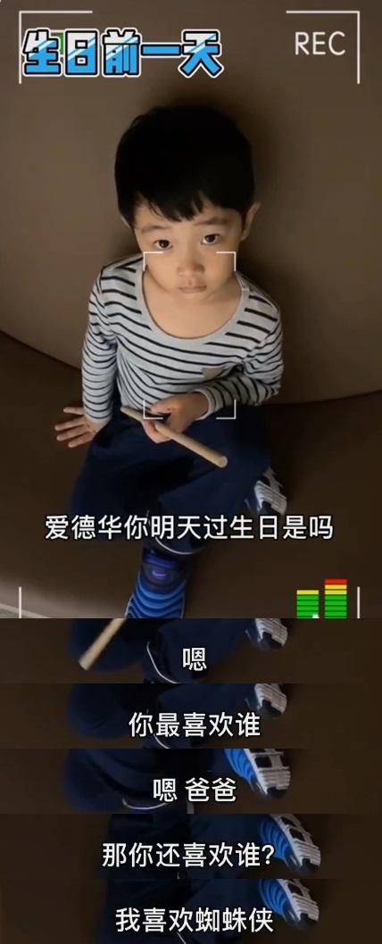 爱德华出现啦!小小只的样子真的是萌萌哒,面对爸爸的提问,一句一句的回答着。当被问到“你最喜欢谁”时,爱德华不假思索的回答了“爸爸”。相信朱桢听到这个答案,一定是心花怒放了吧!朱桢继续提问,“那你还喜欢谁?”。爱德华回答,“蜘蛛侠”。