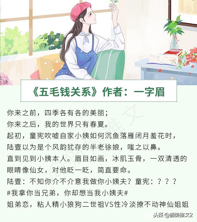 《五毛钱关系》作者:一字眉简评:男主粘人精富二代,在女主面前永远耍帅失败,女主高冷寡言神仙姐姐,爱看恐怖片。男主在素描课上睡着,被老师叫醒后看见了担任人体,模特的女主,一见钟情,开始搭讪,然而高冷女主并不理他。男主后来发现女主是好友的小姨,便借好友接近女主追求女主。男主巨蠢,自己怕鬼,但死撑着陪女主看恐怖片,结果被吓到崩溃。舍友偷拍女主换衣服,女主发现后搬出宿舍,男主为了给女主撑场面,在女主搬走那天,让好友联系十几辆豪车开到宿舍楼下,自己骑着哈雷出场,结果被举报处罚。真的的蠢萌坏了。