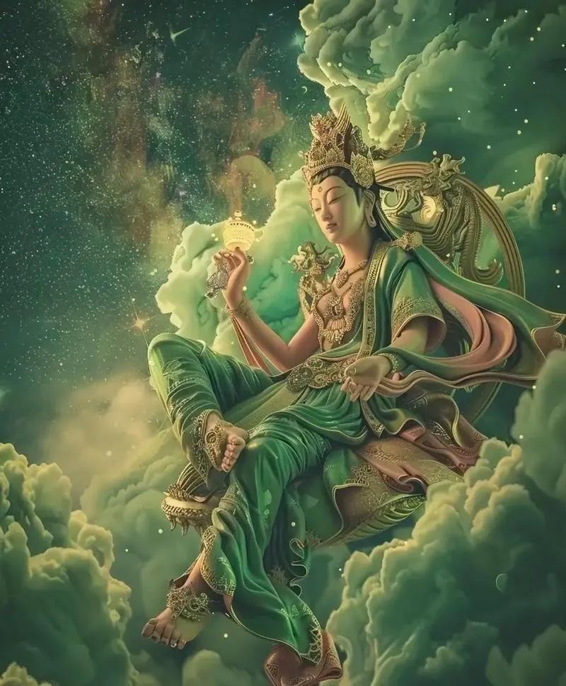 在藏传佛教的神圣殿堂里,绿度母菩萨以其独特的魅力与深远的影响力,成为信众心中无尽慈悲与救渡力量的象征。她的形象、故事与宗教地位,犹如一颗璀璨星辰,在佛教浩瀚的星空中闪耀着独特光芒。