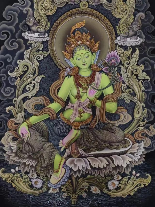 而绿度母菩萨作为二十一度母之首,是观音菩萨慈悲力量在世间救度众生的一种具象化、特定化的体现,有着自己独特的形象、象征意义以及在救度众生方面相应的侧重,成为藏传佛教里备受尊崇、能为信众消灾解难的重要神祇形象。