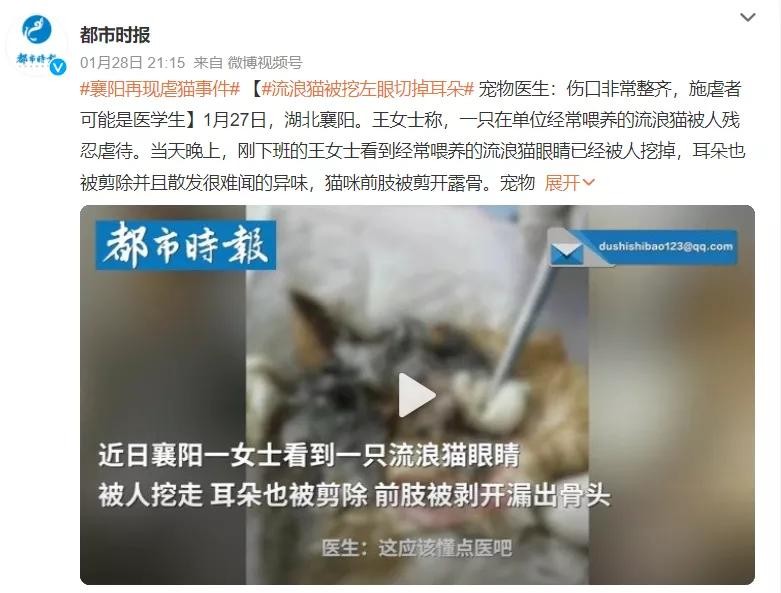 相对于其他动物,猫咪的获得成本低,市面上普通的土猫最便宜的可能也就几十块一只,而且城市小区周围基本都有流浪猫,这些都是施虐者最好的目标。