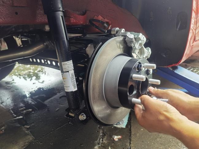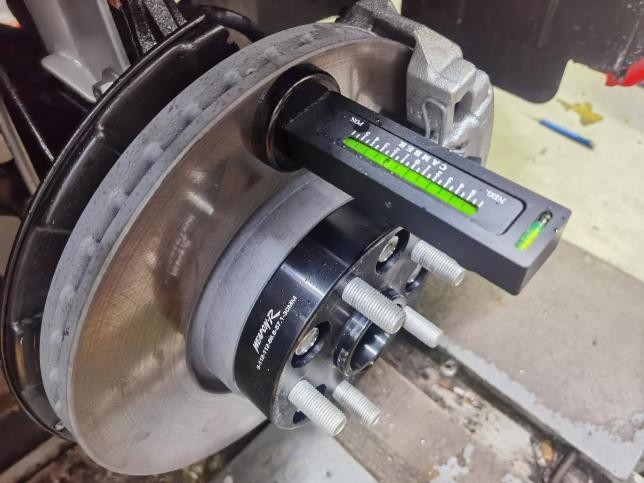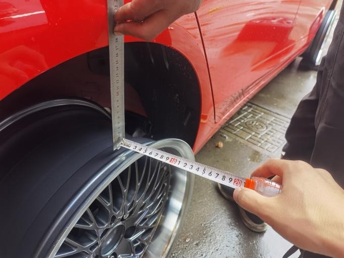 所以我们先把轮毂上车,再用卷尺测量凸出来得宽度