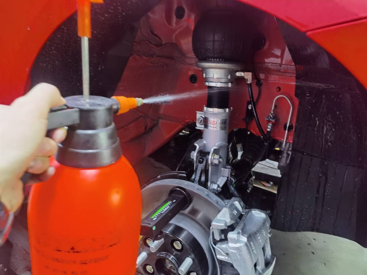 避震得时候要用角度尺测量四轮倾角,前后轮2侧要保持一致得角度