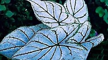 白雪五彩芋·是较为纯洁的品种。 叶片白色,叶脉、叶缘为深绿色,有独特的观赏价值。