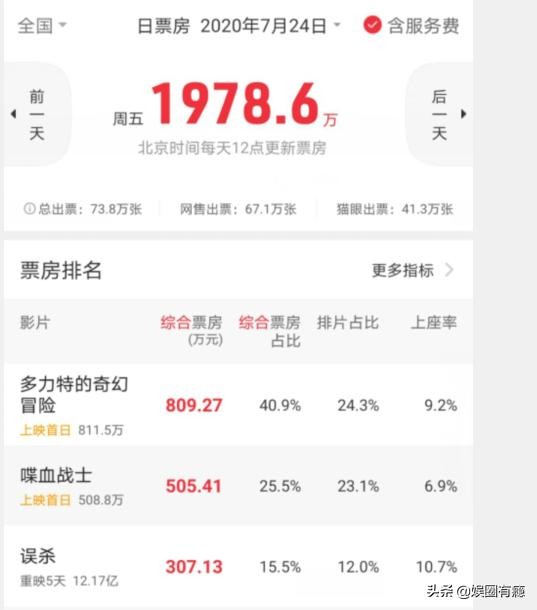 只是这一次《大话西游》两部作品重映后并没有迎来多好的票房收益,在24日两部影片一共加起来才21万票房,分别排在单日票房榜的第10和15位,而单日票房冠亚军分别是拿下809万的《多力特的奇幻冒险》和505万的《喋血战士》。