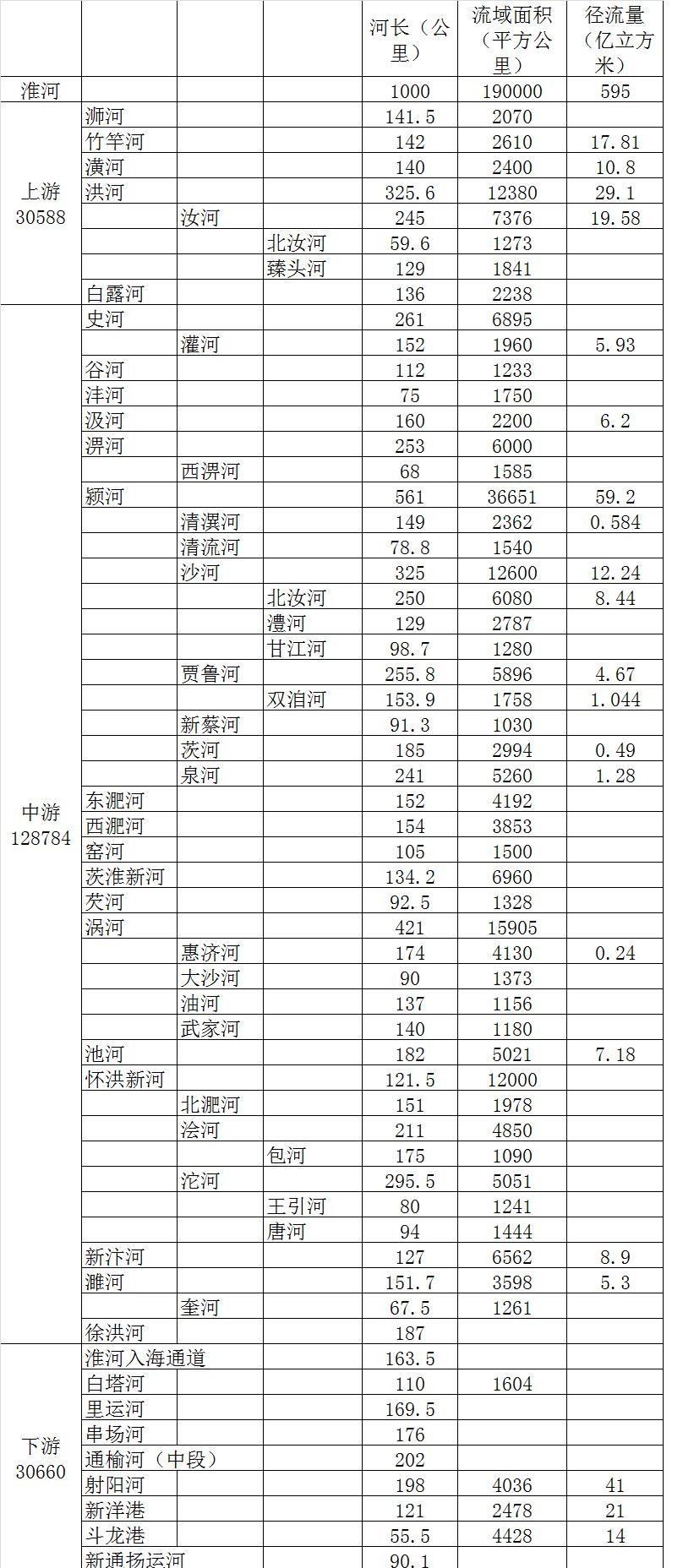 颍河:河长561平方公里,流域面积36651平方公里,径流量59.2亿立方米