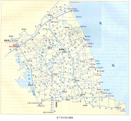 里下河地区主要河流:里运河169.5公里,串场河176公里,通榆河(中段)202公里,射阳河河长198公里,流域面积4036平方公里,径流量41亿立方米