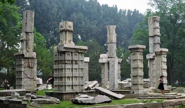 石劫:卖石头也能发财民国初期走马灯一样更迭的军阀,都把圆明园作为取之不尽的建筑材料场,溥仪时期的档案留下了不少无奈的记录:“军人押车每日10余大车拉运园中太湖石。”实际上,拆卖的情况远比档案中记载的严重得多。徐世昌拆走圆明园属鸣春园与镜春园的木材,王怀庆拆毁园中安佑宫大墙及西洋楼石料。从此,圆明园废墟凡能作建筑材料的东西,从地面的方砖、屋瓦、墙砖、石条,及地下的木钉、木桩、铜管道等全被搜罗干净,断断续续拉了20多年!后人称此为圆明园火劫之后的“石劫”。石劫中遭受损失最大的是西洋楼景区的欧式建筑。座落在圆明园西北角上的安佑宫,是清代皇家在园中的祖庙,气魄宏大,尤其是殿前的两对华表,雕琢舒朗精美。历经数劫之后,安佑宫和周围牌坊林木尽失,惟余两对华表。