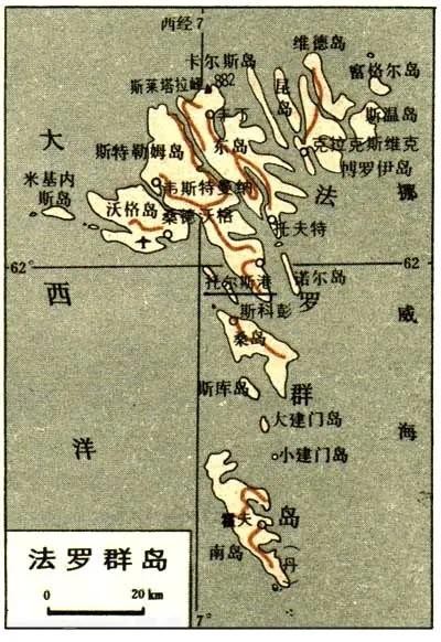 法罗群岛是位于欧大西洋北部火山岛群,是位于冰岛和设得兰群岛中点,整个面积为1399平方千米,人口为4.85万。法罗群岛是由一个18个主要岛屿组成岛群,这里距离北欧大约为655千米。法罗群岛海岸线长度为1117千米,岛上没有重要湖泊和河流。法罗群岛有多山,冰斗,U形谷发育,最高点海拔高度为882米。法罗群岛是属于温带海洋气候,全年温和湿润,降水均匀。