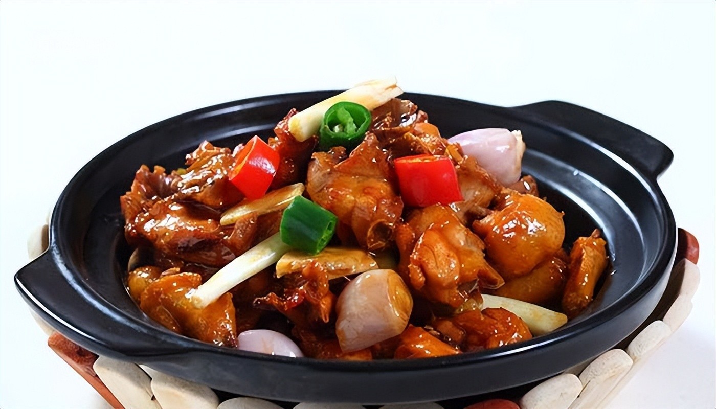 三杯鸡是江西传统名菜之一。以鸡肉为主料,搭配米酒、酱油、青椒等调料制作而成。鸡肉鲜嫩多汁,酱汁浓郁可口,烹饪方式独特。鸡肉在烹制过程中充分吸收了调料的味道,再搭配上青椒的清香和米酒的醇香,味道更加丰富多样。