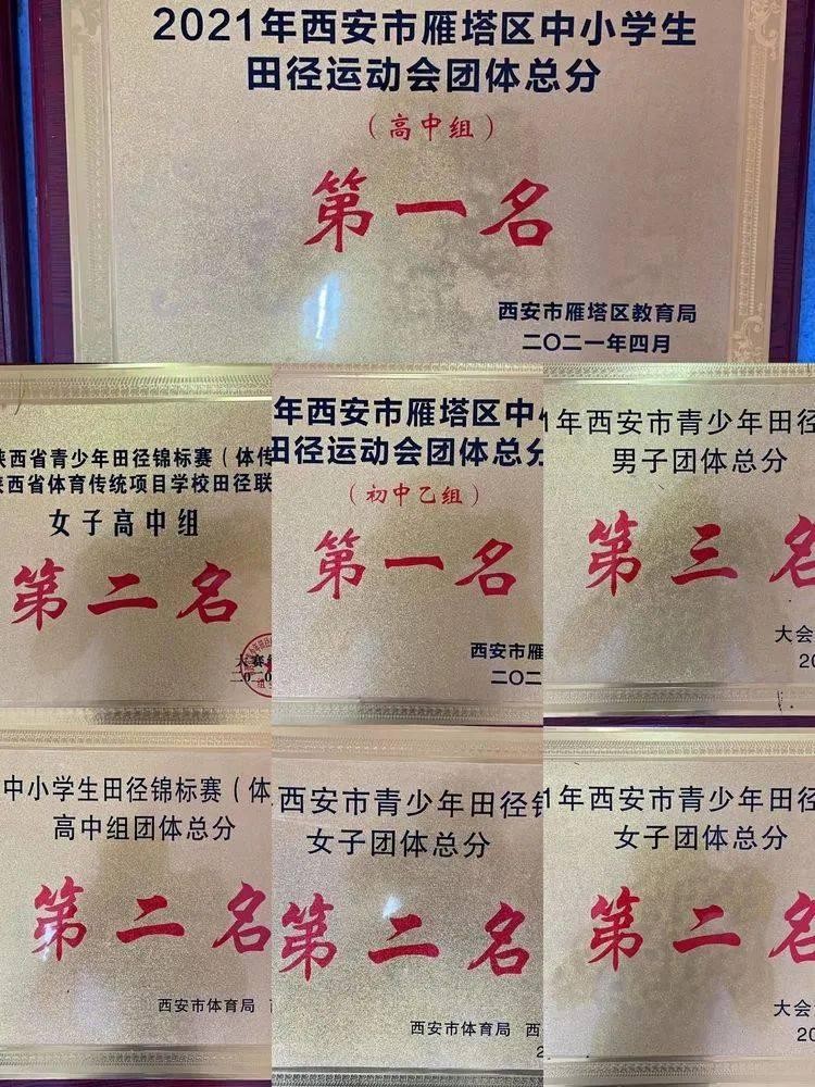 学校拥有标准的400米国家一类田径比赛场地,体育用房充足,体育设施完备,天然草坪完善,标准的链球、标枪等长投项目场地,在整个陕西省中学里拥有独一无二的条件。完全能满足各项体育项目的训练需要。