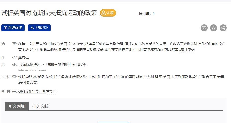 参考资料:[1]赵克仁.试析英国对南斯拉夫抵抗运动的政策[J].国际论坛,1989(1):44-50