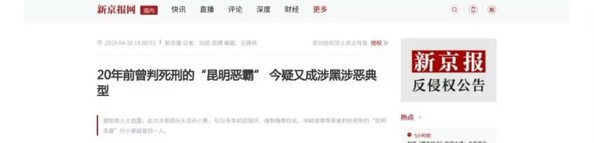新京报:20年前曾被判死刑的“昆明恶霸” 今疑又成涉黑涉恶典型