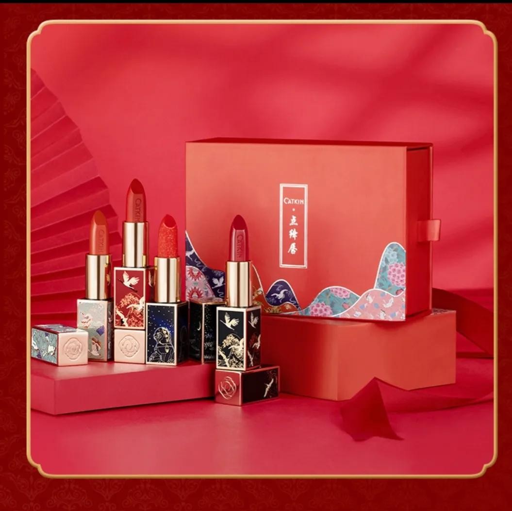 口红外观是精美的中国风图案,经典的红色喜庆十足