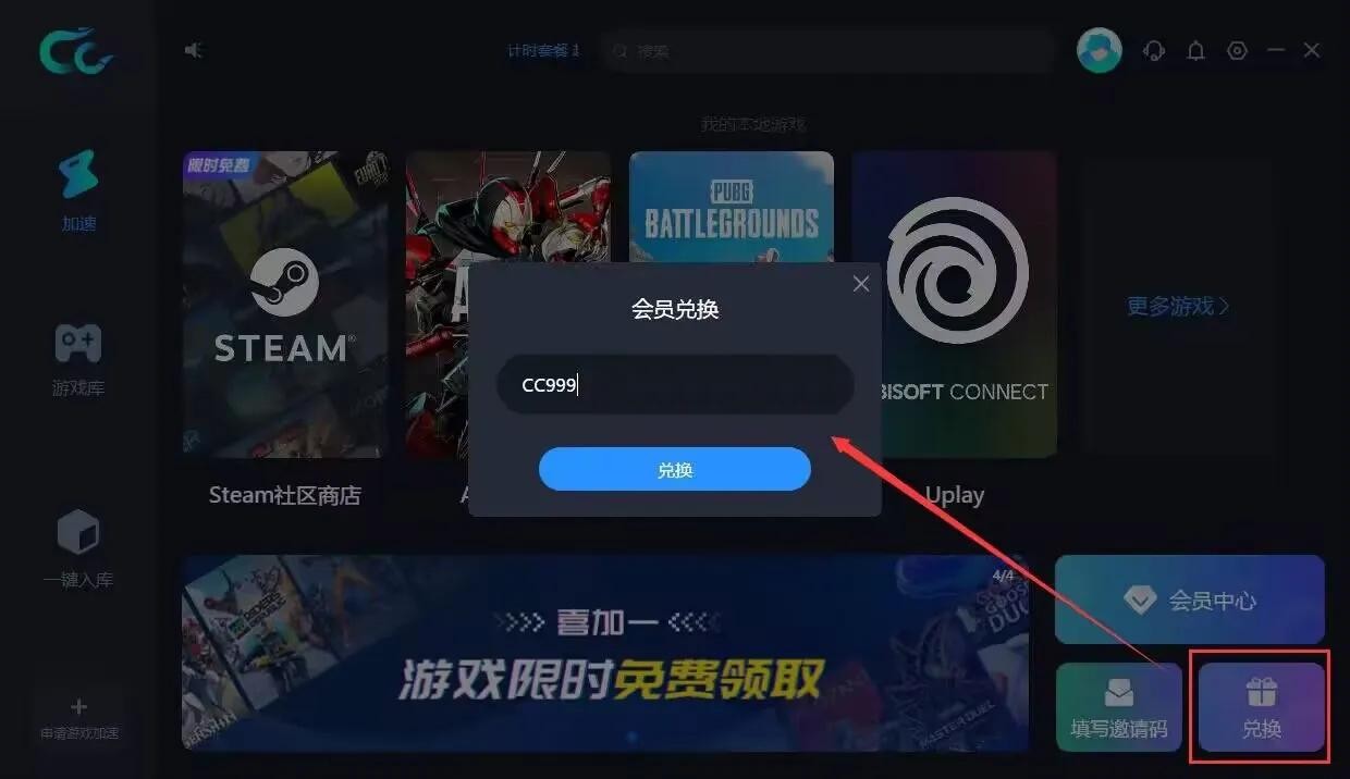 目前cc已开启该游戏的免费加速且支持steam永久加速,此外,在cc加速器PC版输入兑换码CC666,还可获得3天免费时长。