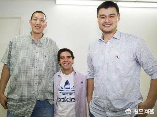 卡卡为何被球迷称为巴西队的“队草”,因为他真的帅。他的帅不仅是颜值高,1.85的个子也是相当标准,这就是男模的身材。结果1.85的卡卡跟姚明和孙明明同框时,他直接成了“小学生”的身材。站在两大巨人中间,卡卡的安全感肯定爆棚了。