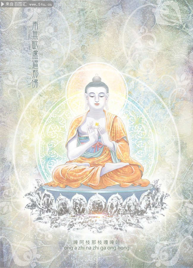 在密宗信仰体系中,毗卢遮那佛占据着举足轻重的地位。他是密宗修行者所崇拜的主要对象之一,与五方佛、大日如来等概念紧密相连。五方佛代表着宇宙五大方位和五种智慧,而毗卢遮那佛作为其中的中心佛,不仅统摄四方,更象征着至高无上的智慧和慈悲。此外,毗卢遮那佛还常被称为大日如来,这一称号进一步强调了他如太阳般普照万物的智慧之光。在密宗修行中,毗卢遮那佛被视为实现即身成佛、快速觉悟的重要依止对象。
