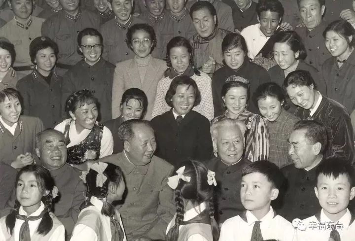 音乐舞蹈史诗《东方红》演出后,毛泽东等党和国家领导人亲切接见演员。