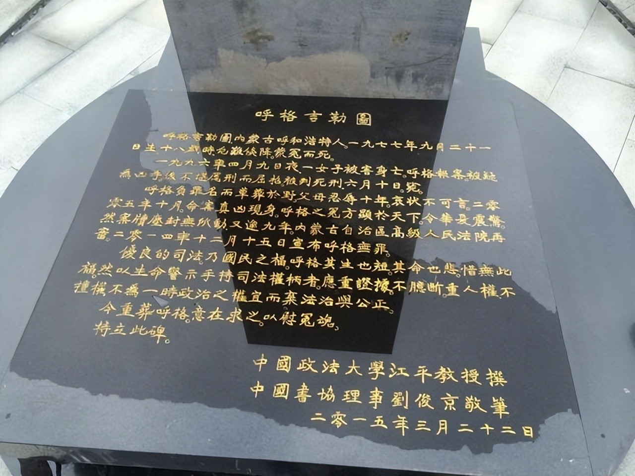 2015年11月11日,呼格吉勒图的骨灰被转运到呼和浩特市安佑生态纪念陵园。