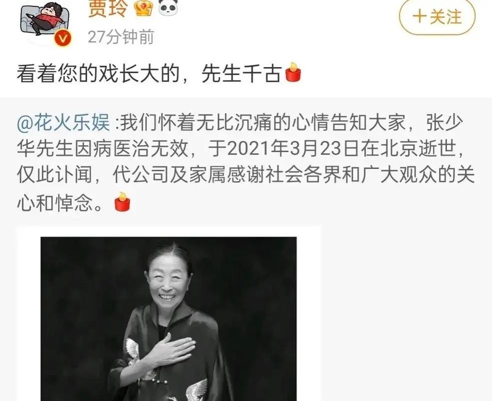 而且在张少华老师去世后,不少明星都在表达悲痛和哀悼,贾玲更是对其以“先生”称呼。