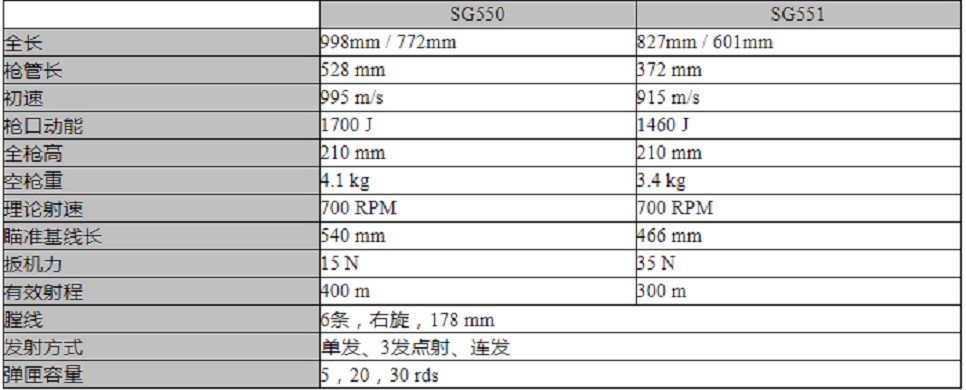SG550与SG551详细参数