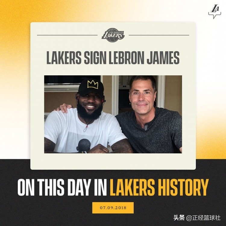 在今天早些时候,湖人队官方推特晒出了詹姆斯当时的签约照,用来纪念这一时刻,并且写道:“这是载入史册的一天:当国王成为一名洛杉矶湖人。”