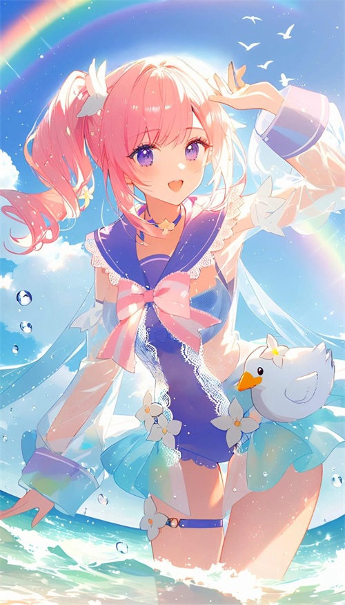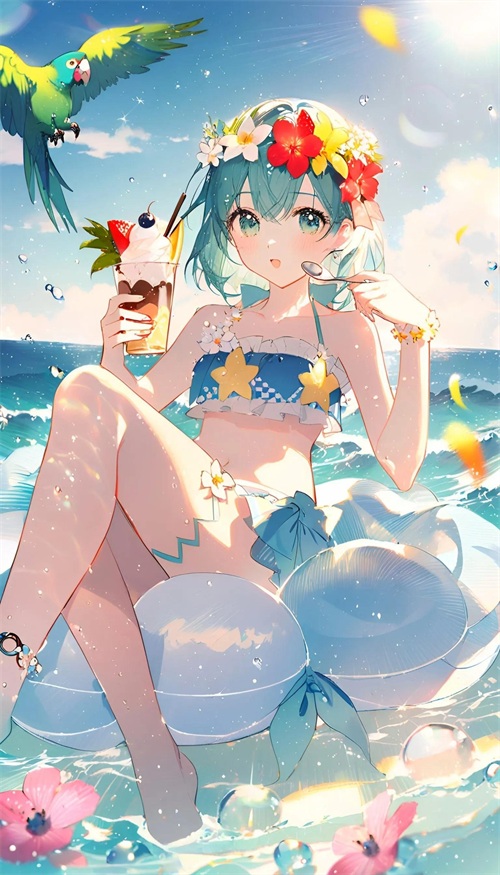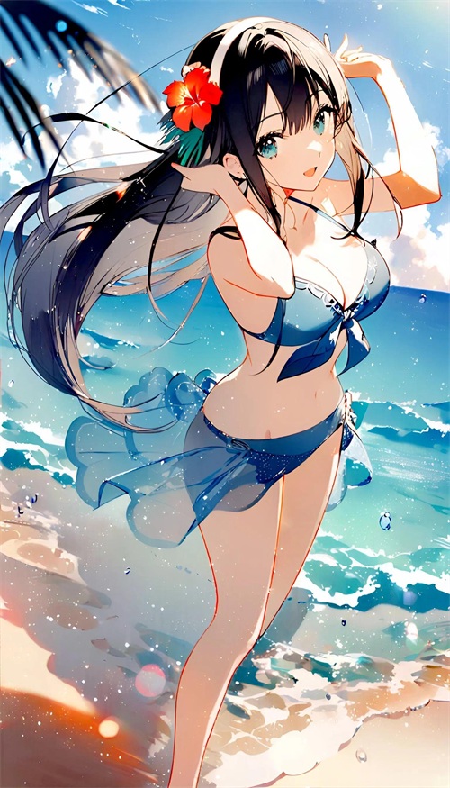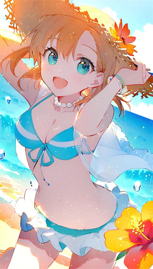 少女的泳装如同诗笺上的色彩,在阳光下闪耀,她的身影是最美的诗行。