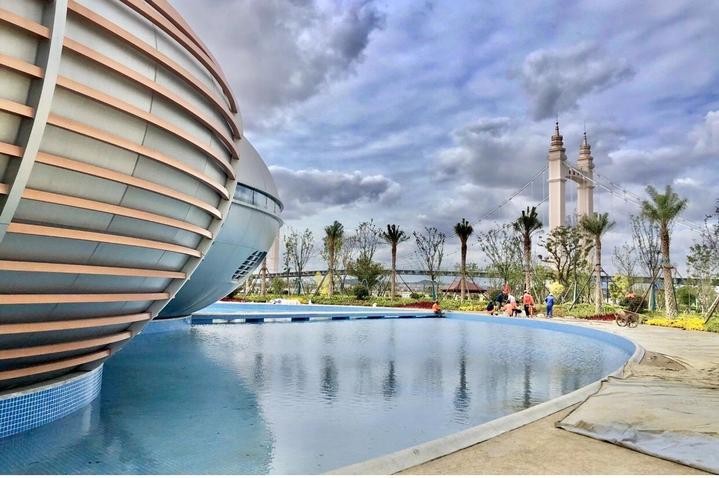 据了解,桥畔公园二期位于新城港岛大桥东侧,向东延伸至茶山浦河道,总用地面积6万余平方米,由绿岛路为分界线,分为A、B两个区块,面积分别约4万平方米和2万平方米,总建筑面积约2300平方米,并配置了129个停车位和公共厕所。