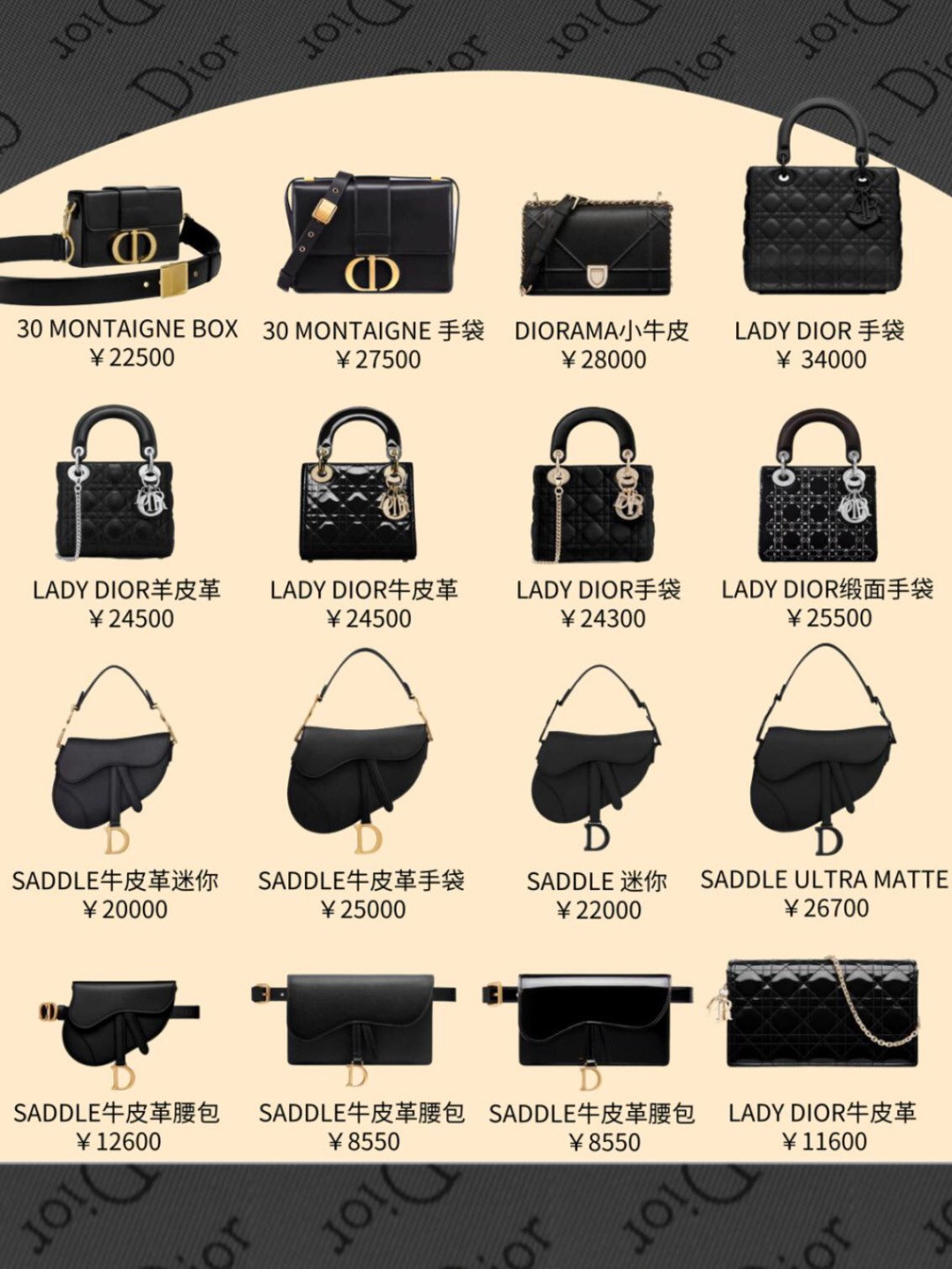 按色系,今天给大家整理的是Dior五大系列的包包合集~