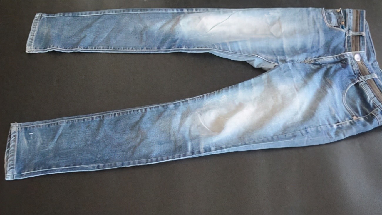 01、先将裤子平铺方式,可以是放在干净的床上,也可以是平铺放在干净的桌子上。第一步就是先将裤子平铺放好,摆放整齐为接下来的叠裤子工作打好基础。