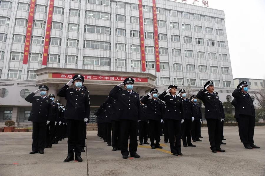 全体民警仪容严整向警旗庄严敬礼