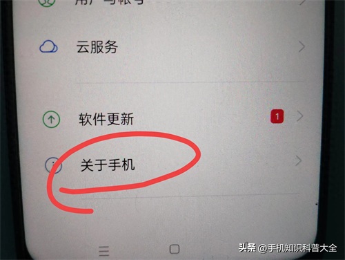 接着往上滑,滑到最底部,点击“关于手机”,(如上图所示)