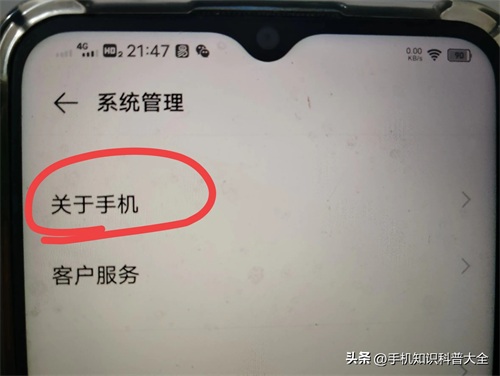 如果没有看到,就点击系统管理最上面的“关于手机”,(如上图所示)