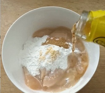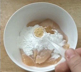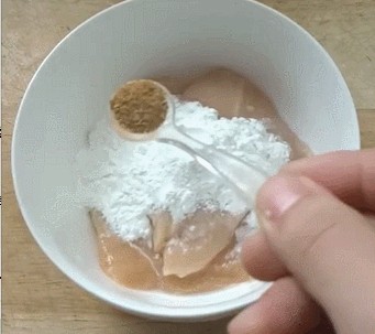 第二步:放入腌制好的鸡胸肉