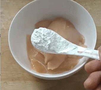 第一步:将切好的鸡胸片放置在事先准备好的陶瓷碗里;