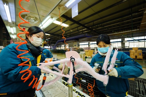 12月27日,河北省平乡县一家自行车、童车生产企业的员工在生产线上工作。 新华社记者 牟宇 摄