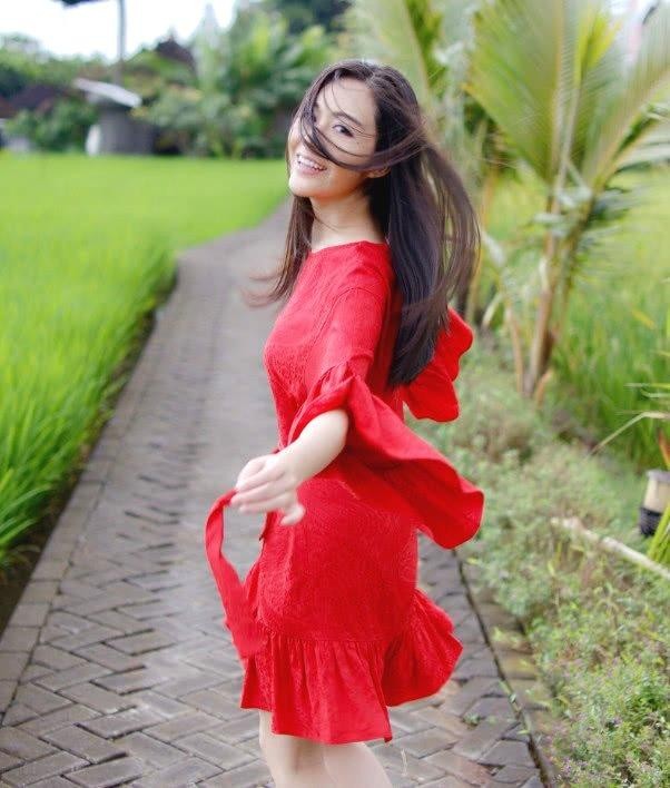 最后这组穿搭是小编最喜欢的,汤晶媚长发被风吹起,凌乱又不失美感,身穿的是一袭红色连衣裙,冰肌玉骨,红衣佳人,这样的汤晶媚真是清纯到了骨子里,带着妩媚风情而又不自知。