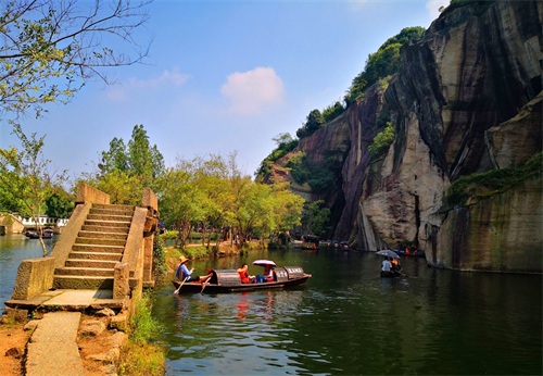 东湖素以山清水秀、亭桥错落、岩奇洞幽、湖洞相连而闻名全国,被誉为“江南的水石大盆景”。背靠一座石山,山脚处有一洞穴,正好可以容纳游客泛舟而入。有种陶渊明笔下《桃花源记》世外桃源的情愫在其中。