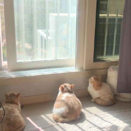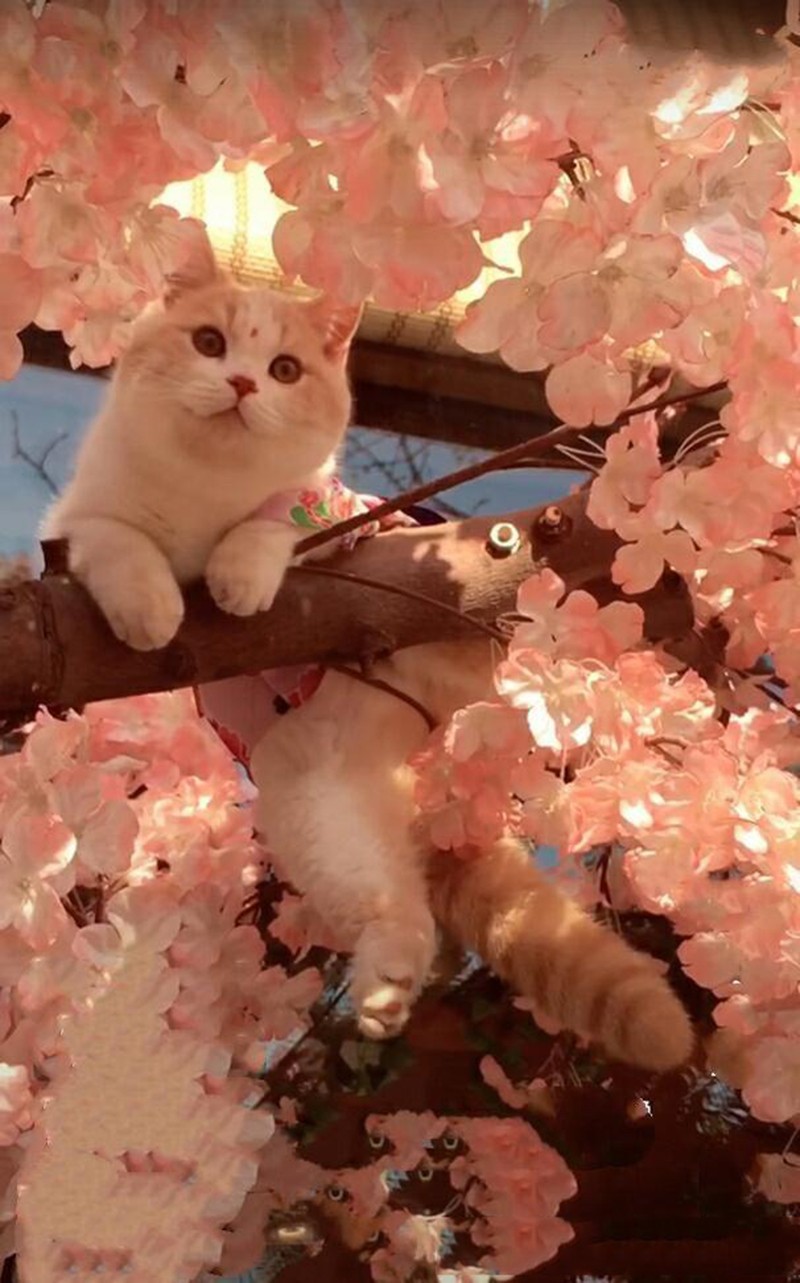 一路繁花莫送,我自妖娆立世。(樱花和猫咪更配哟)天晴尚好,阳光从层层樱花间钻进来,猫咪环在枝头,仿若另一个世界,一切都正好。