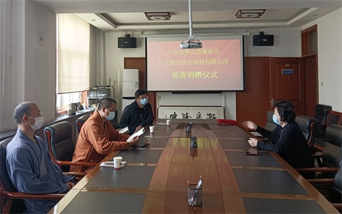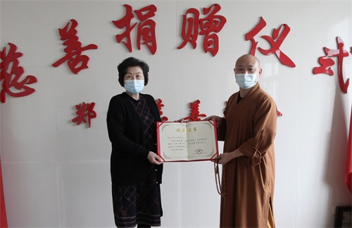 近日,河南省鲁山县佛泉寺住持释妙祥一行来到郑州慈善总会,传递河南鲁山、登封和广州三地对于郑州的关爱。郑州慈善总会副会长王合生为他们颁发了捐赠证书,并交流心声。